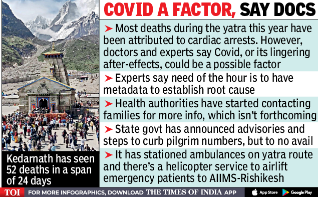 Most deaths this year have been attributed to cardiac arrests at the shrine towns, situated at altitudes ranging between 10,000 ft and 12,000 ft. However, doctors and experts looking for reasons behind this sharp jump said Covid — or its lingering after-effects — could be a possible factor.
