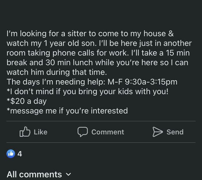 #28 Please Watch My Kid 6 Hours A Day For Only 20 Dollars