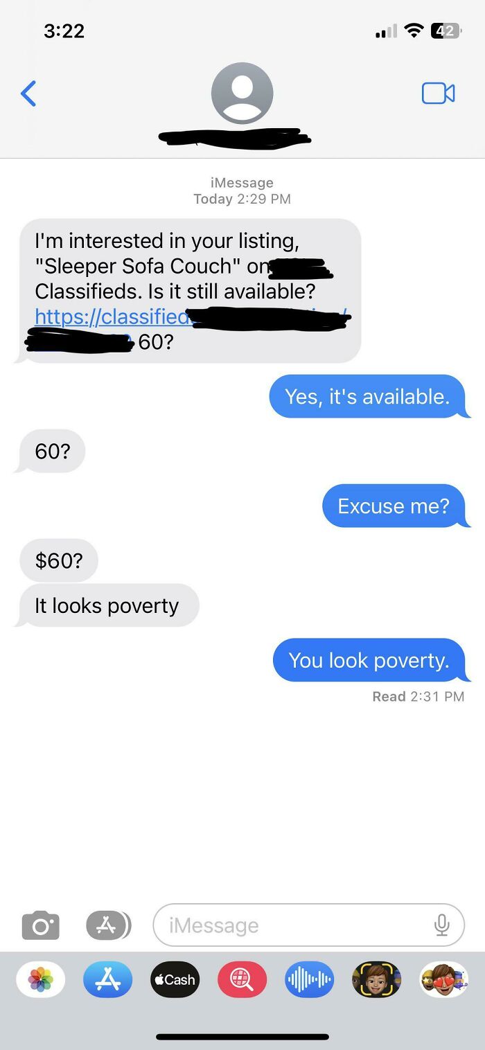 #26 I Bought A Couch On Clearance That Won't Fit, So I'm Trying To Sell It For $1500. This Is The First Offer I've Received