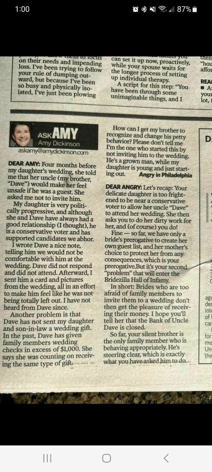 #5 Wherein The Mother Of The Bride Wonders Why The Uncle She Disinvited Isn't Gifting Her Daughter Any Money For Her Wedding