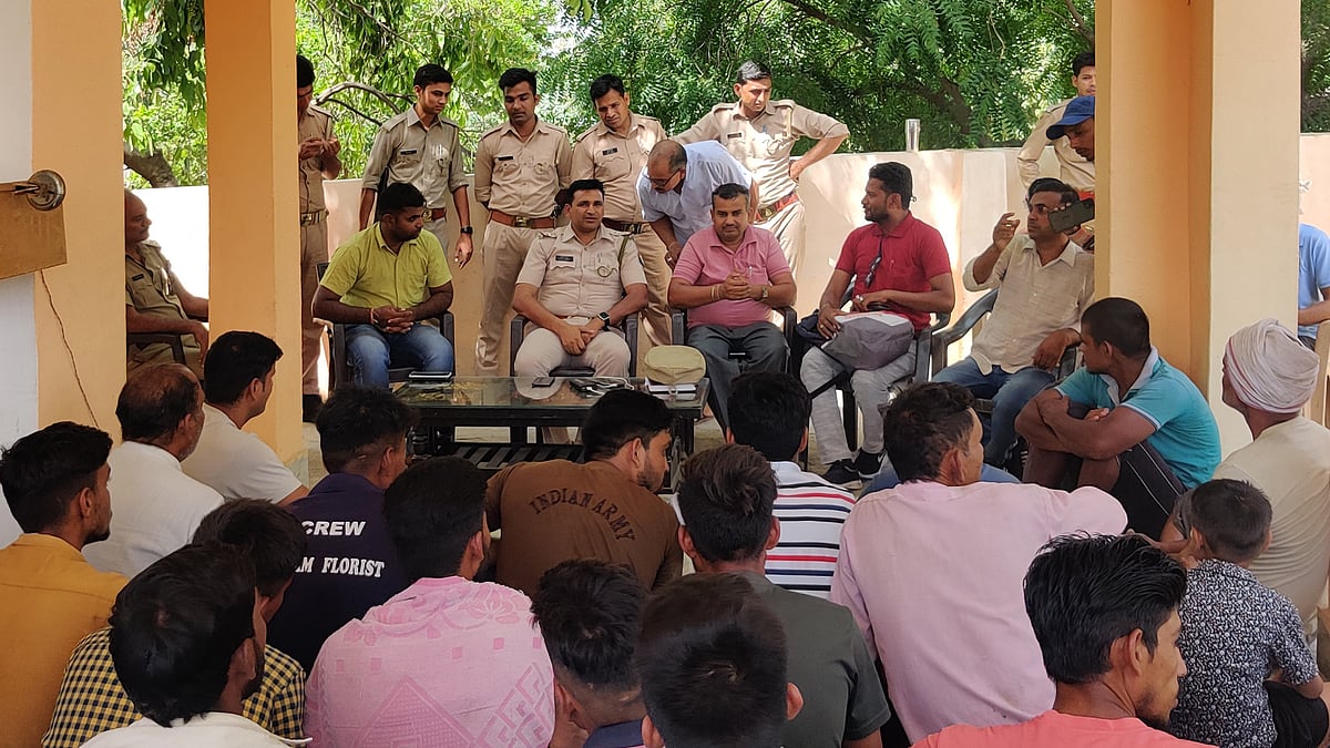 यूपी पुलिस के इस जागरुकता अभियान को समझने के लिए न्यूज़लॉन्ड्री की टीम उत्तर प्रदेश के बुलंदशहर पहुंची. बुलंदशहर के अहमदगढ़ थाना इंचार्ज नीरज कुमार के साथ हमने पूरा दिन बिताया. वो हमें अपने साथ लेकर क्षेत्र के गांव ढाक नगला गए.