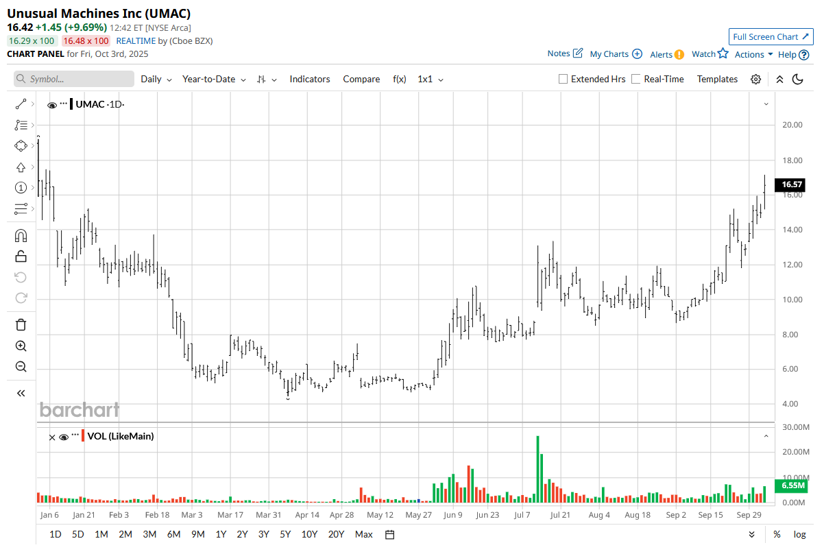Unusual Machines (UMAC) has seen new life after the company announced it had won an order worth $12.8 million for drone parts in support of Strategic Logix’s Rapid Reconfigurable Systems Line (RRSL). The shares surged over 7% during the opening trade as the market responded positively to the defense order announcing the company’s positioning as a key provider of U.S.-made NDAA-compliant UAV technologies.