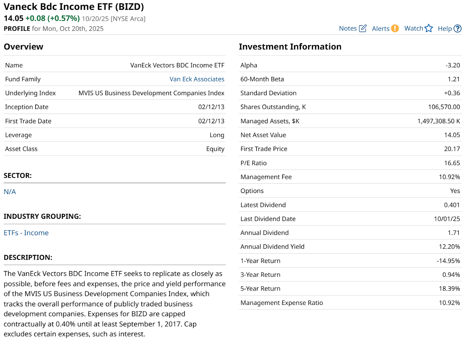 But ETFs are also a great way to play specific themes the market cares about, and specific economic conditions. Such is the case with the VanEck Bdc Income ETF (BIZD).