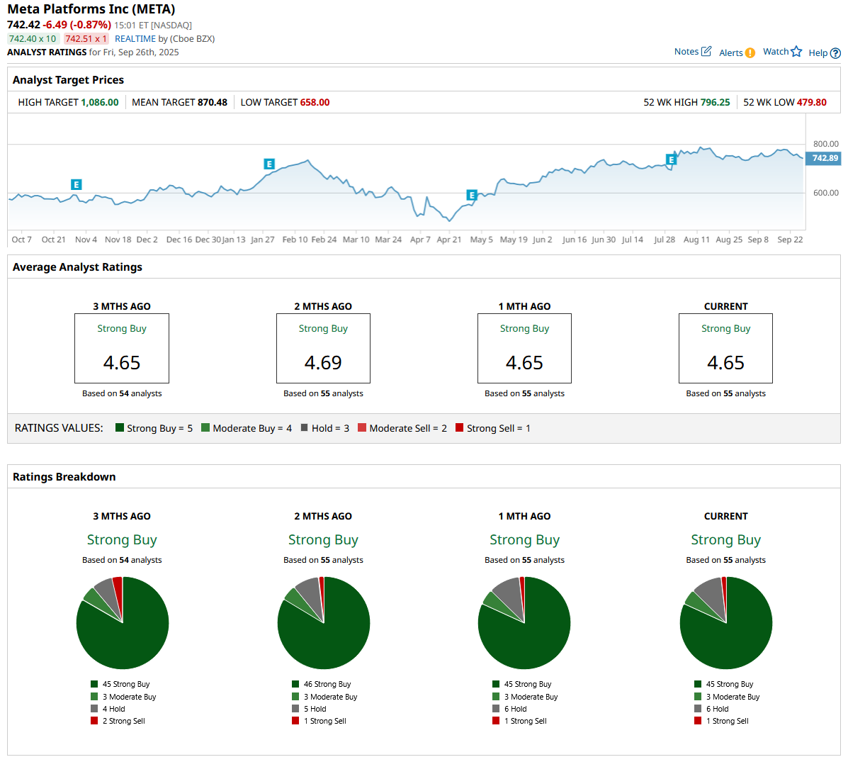 Wall Street analysts clearly remain very bullish on Meta's near- and medium-term prospects, with the consensus price target on this stock now at $870 per share. That implies around 16% upside from here, with the most bullish analyst suggesting META stock could surge around 25% from current levels to fresh highs in the coming months.