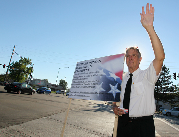 The last hurdle, Duncan has found, has nothing to do with filing but whether it's even worth filing. States like Oregon and Washington lump together all votes for write-in candidates. Only if he wins will he ever know how well he did there.