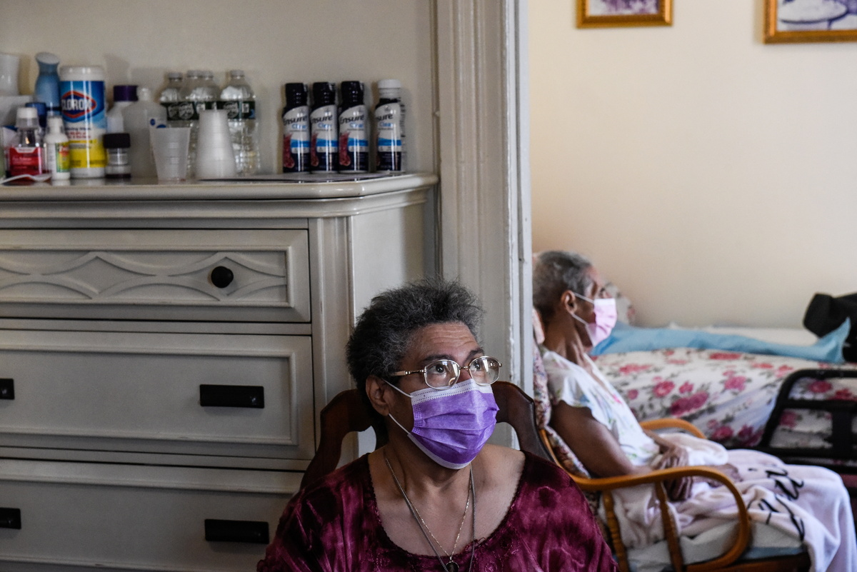 Clara Vazquez, 56, uses crutches to walk and has carpal tunnel syndrome. Yet, she cares for her mother's around-the-clock needs inside their second-floor apartment in Yonkers, just north of New York City.