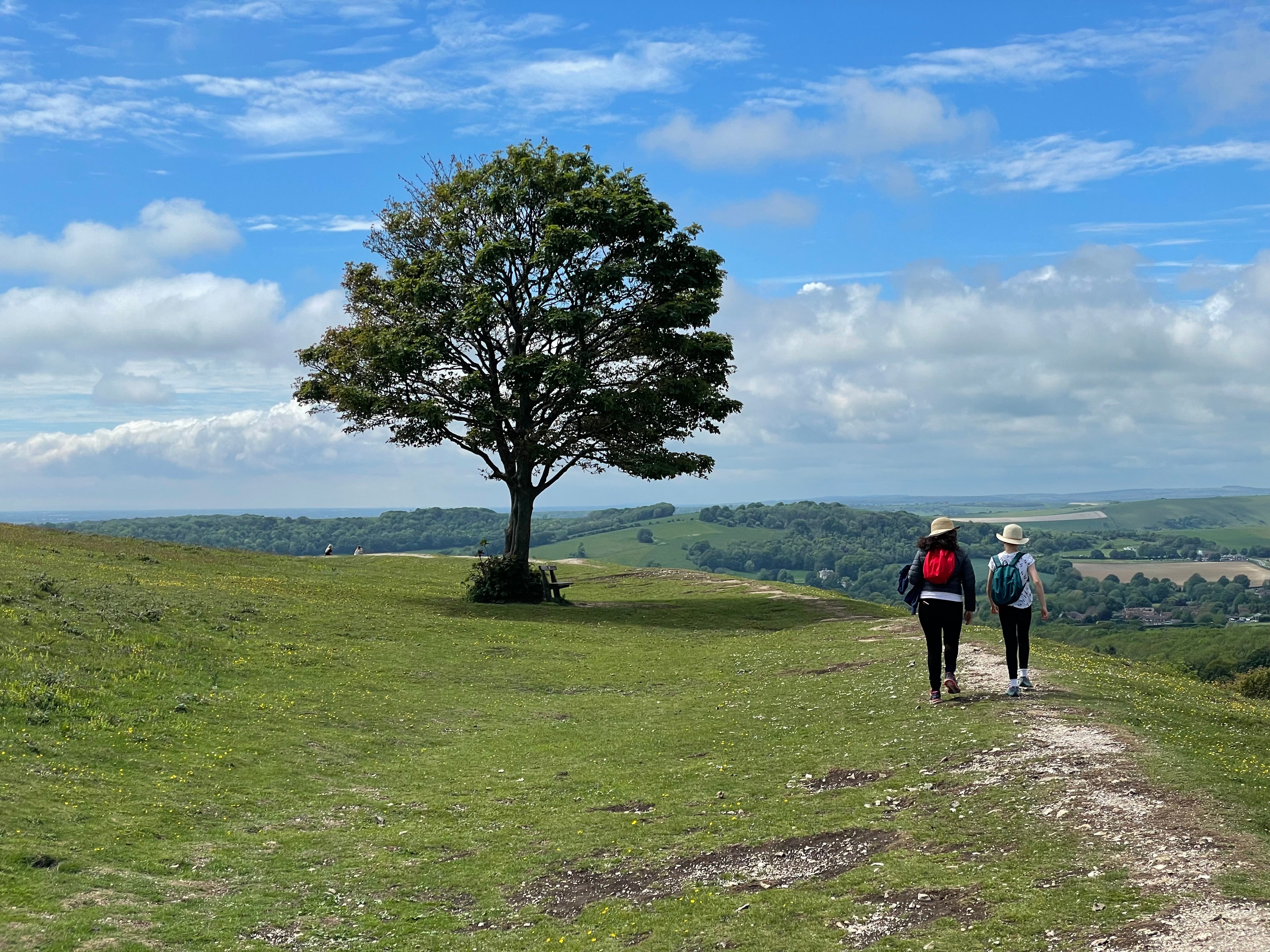 People have been using the hilltop as a vantage point since Neolithic times, for hunting animal herds. But nowadays, to the south, you can see across Worthing to the giant Rampion offshore wind-farm, and to the north to the unspoilt rolling green hills of the South Downs.