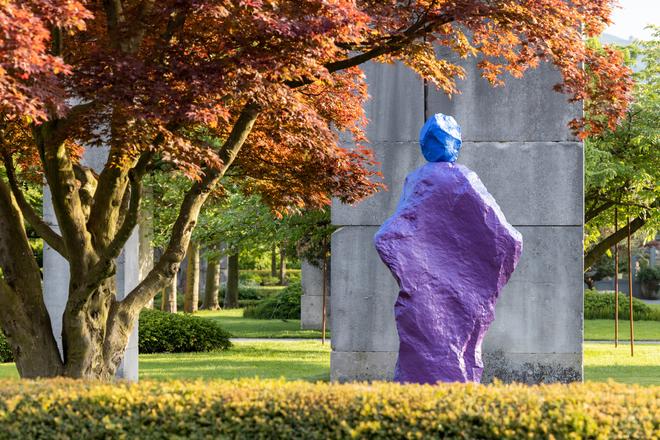 He began to save trees earmarked to be felled, to make space for buildings, about 20 years ago. A 150-year-old red leaf Japanese maple that was moved to the park was originally planted for the launch of the Zurich Opera House in 1895 — when German composer Johannes Brahms played at the opening. But when the opera house was restored in 2017, the builders wanted to cut it down. Enea transplanted the tree to give it a new life. He told me that each of his 3,300 trees is appreciated at the museum as art. Some are set against sandstone blocks, and the space is complemented by contemporary sculptures by renowned artists, such as German conceptual artist Olaf Nicolai.