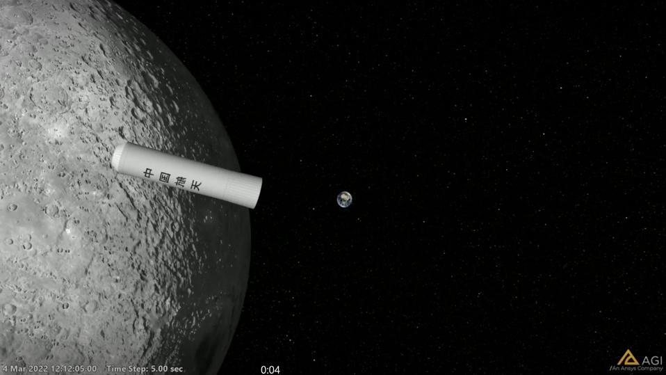 The debris is the third stage booster from the launch of a Long March 3C rocket that launched China’s Chang’e 5-T1 spacecraft from the Xichang Satellite Launch Center on October 23, 2014. It has been orbiting in the Earth-Moon system ever since, though rather erratically.
