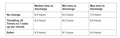 The feature is still an experiment, and Google may not necessarily release it to users, but in tests putting rate limits on JavaScript code running in the background was found to improve battery life by as much as two hours.