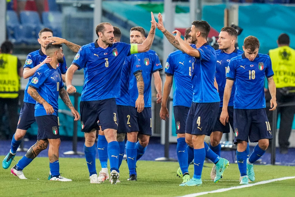 Italy are in imperious form and within sight of a national record. A 29-match unbeaten run has left the current side one game short of two-time World Cup-winning coach Vittorio Pozzo’s record of 30 unbeaten games between 1935 and 1939. Italy’s last loss was against Portugal in September 2018. Since then they have won 24 and drawn five, scoring 80 goals. Italy have scored 59 goals in their past 19 games, conceding just three, and won the last 10 with a combined scoreline of 31-0. They last conceded a goal in a 1-1 draw with Holland in October 2020.