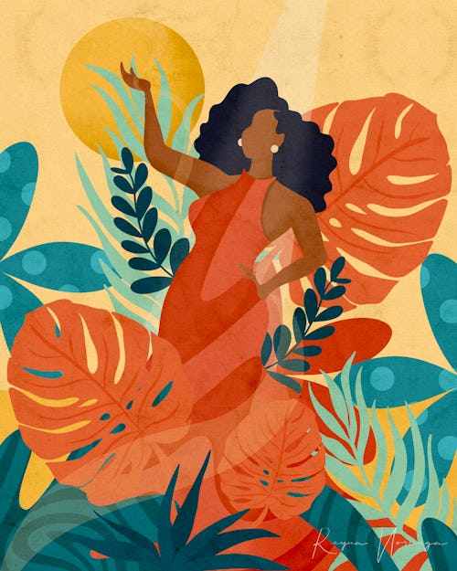 Noriega: Creating art is like a funny dance where you're giving a lot of yourself, but it also fills you up. For me, whatever I'm pouring out, it's something that I need at the moment. Do I need more joy? Do I need more peace? Do I need more unity? Whatever it is that I'm feeling, it'll come out in that image. Everything we create is a commentary of the times. Although I'm creating images to make us feel good, it's because of these real world, very ugly things that are happening. It's not to ignore them. It’s so I can fight the long fight. My creative practice has revolved around finding ways to combat all of the oppression that I face as a woman, as a Black woman, and as an Afro-Latina. Being able to live my dream as a full-time artist, it feels like my responsibility then to teach and share about my journey and make sure that I'm being a blueprint and resource for others from our community that hope and aspire to live life based on their passions, their hopes, and their dreams.