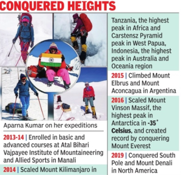 “Mountaineer Bachendri Pal has been my inspiration and because of her, many girls/women who wanted to foray into mountaineering got wings,” Kumar told TOI.