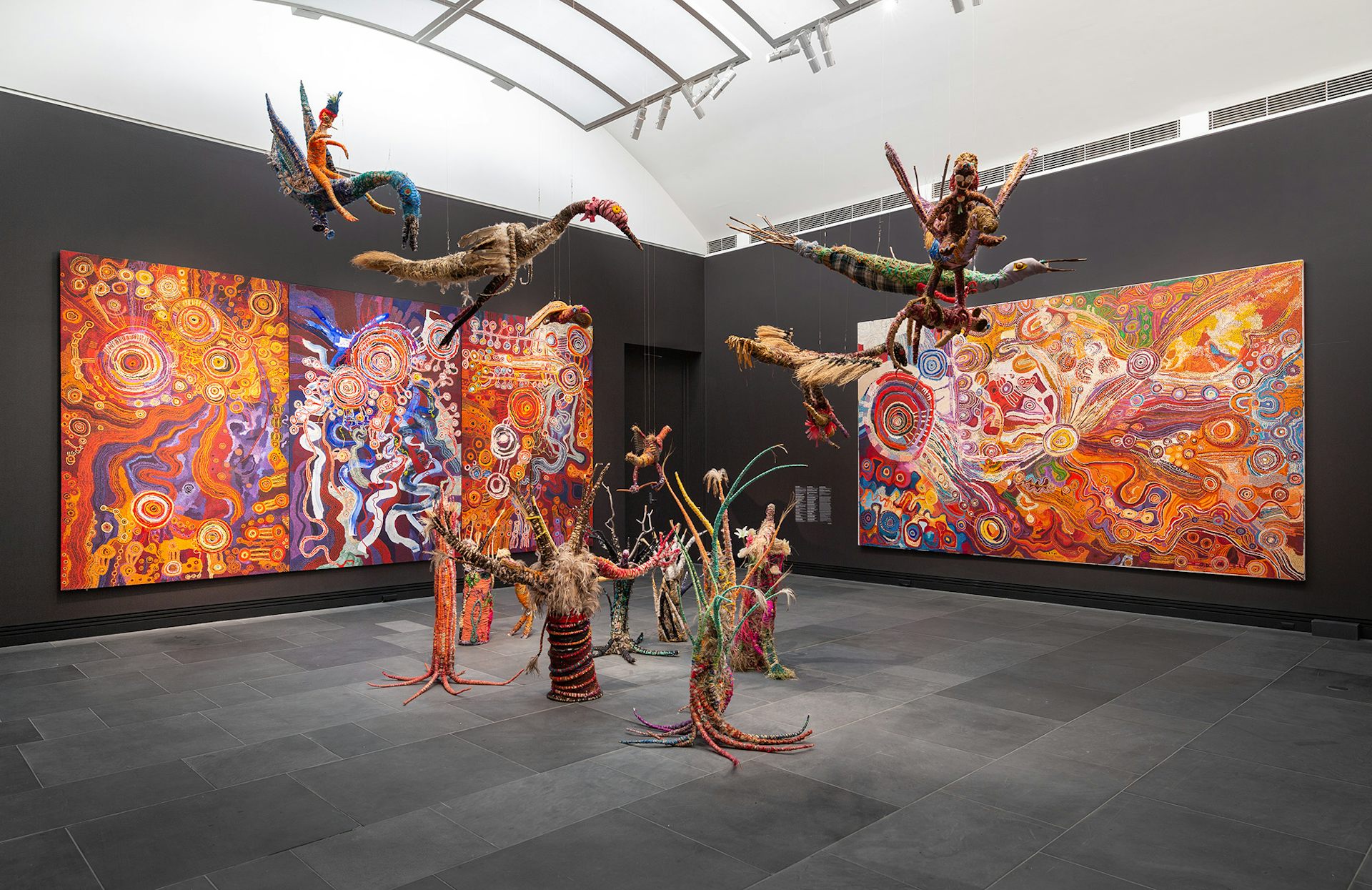 The monumental three-by-five-metre collaborative canvas painting Kungkarangkalpa: Seven Sisters (2016) by 24 female Anangu artists of the APY (Anangu Pitjantjatjara Yankunytjatjara) Lands speaks to the many ambitious projects Tarnanthi has fostered.