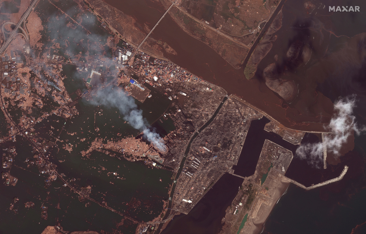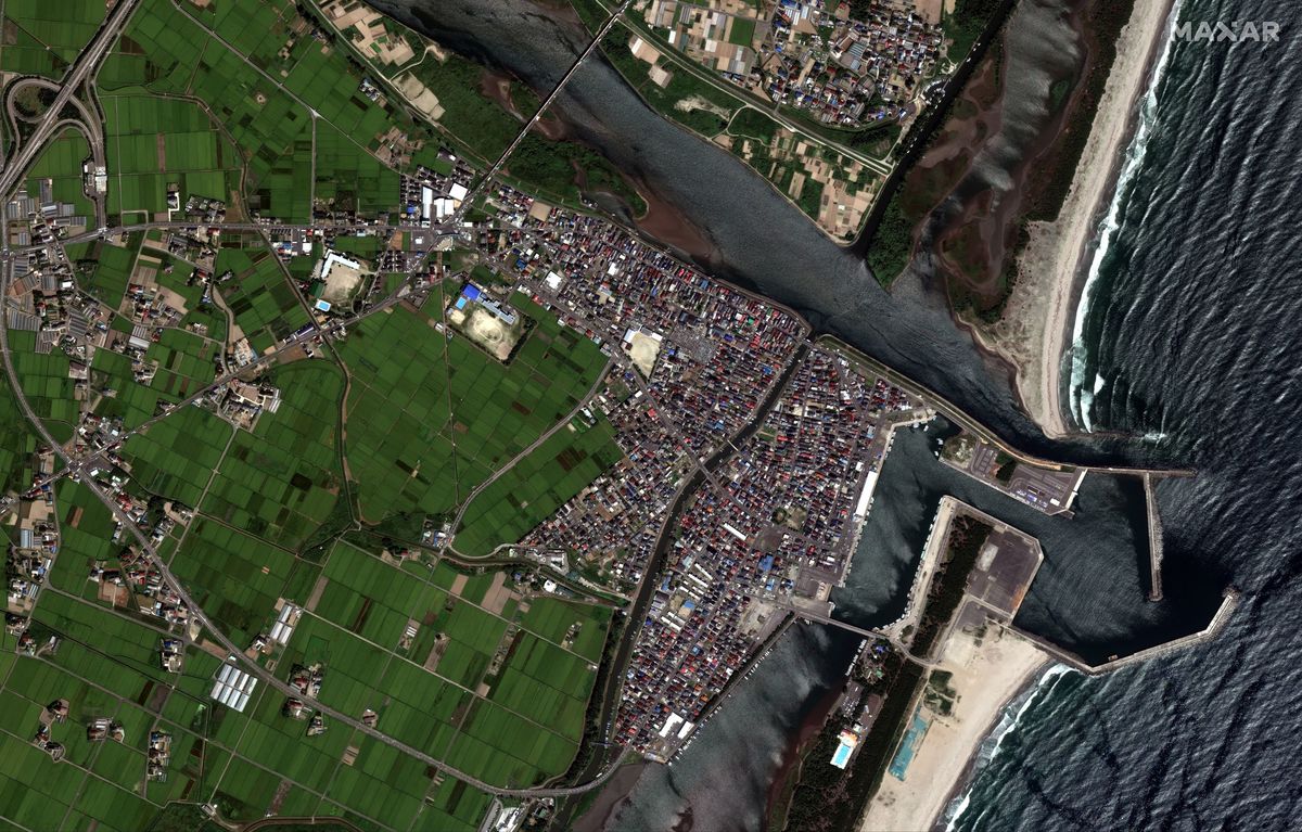 Sendai, Japan is seen after a tsunami hit, in this handout satellite image taken March 12, 2011 and released on December 24, 2019 by Maxar Technologies. Maxar Technologies/Handout via REUTERS.