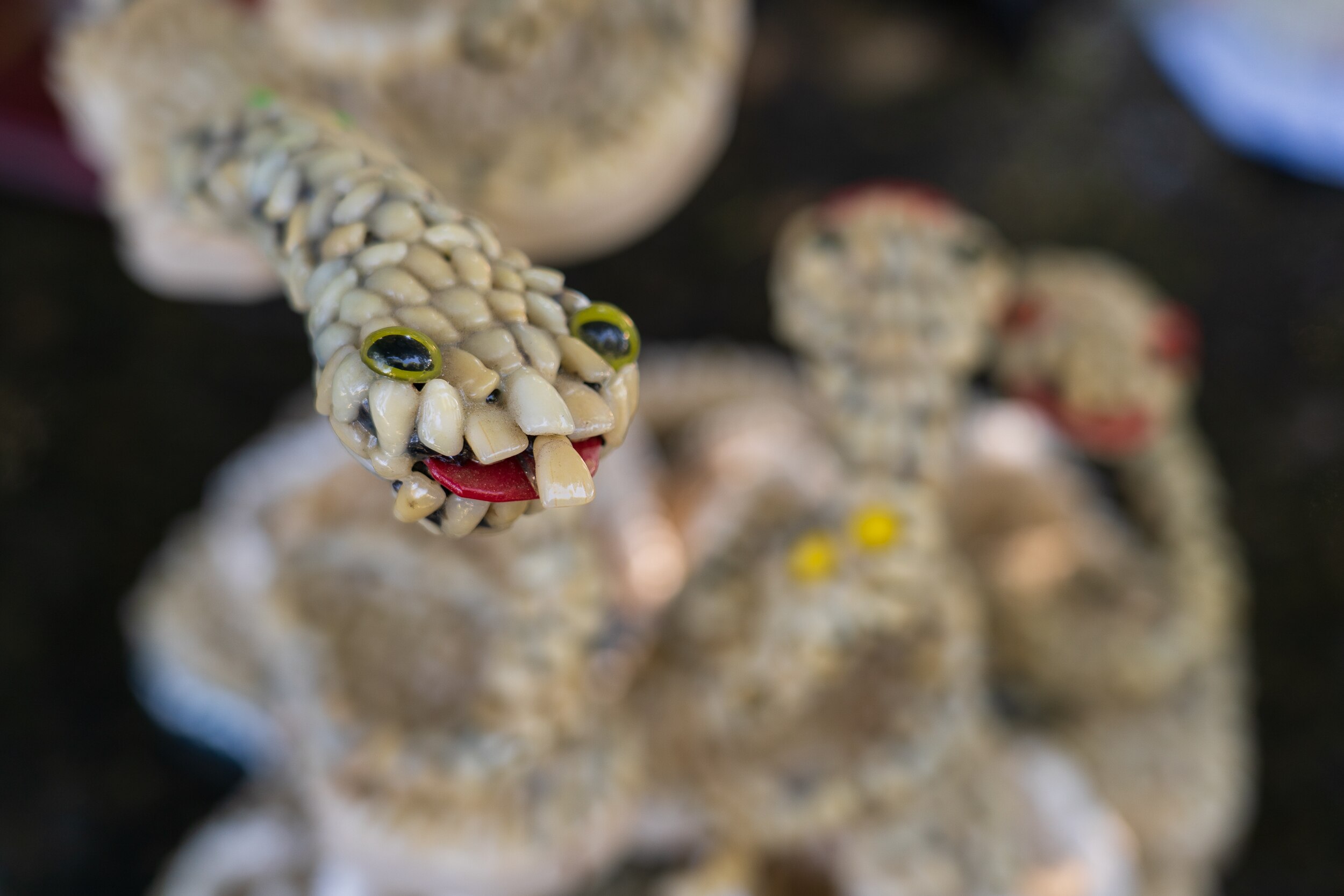 But displayed deep inside the pyramid was something uncanny — a collection of sculptures made from human teeth and dentures.