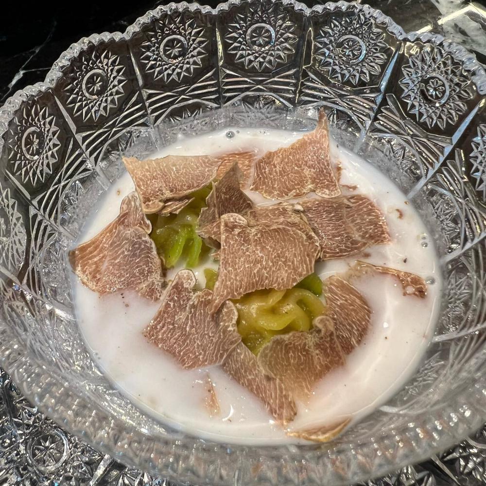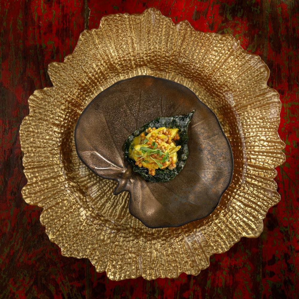 A betel leaf sorbet with grilled pineapple granita cleanses the palate, which is now ready for the rich dessert. Chor muang enters 2021 with caramelised coconut, warm coconut milk, a splash of truffle oil and if you're feeling festive, add shavings of white Alba truffle.
