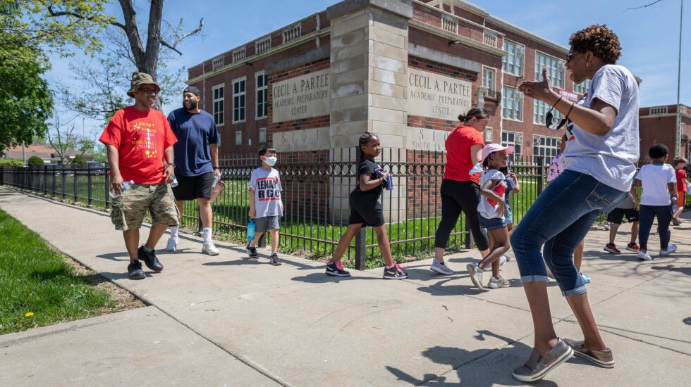 On a hot Friday afternoon, students at Lenart Elementary Regional Gifted Center dance with zest in the parking lot as a DJ plays music. They are excited to get out of their public school classrooms for a walkathon, a fundraiser for the school in West Chatham on the South Side.
