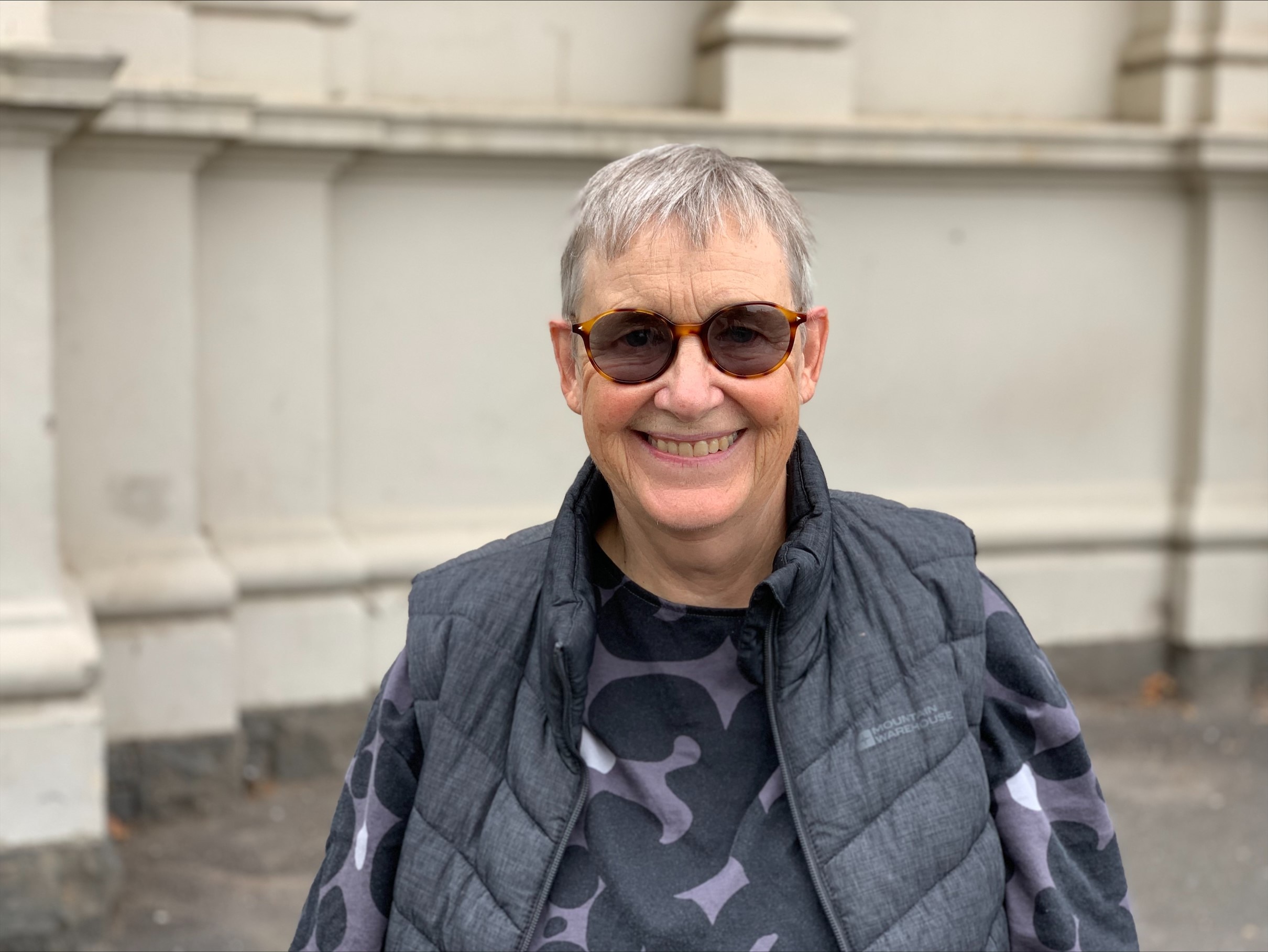 Liz Martin lives in Bendigo but travelled to the Royal Exhibition Building to get her dose of the Novavax vaccine.