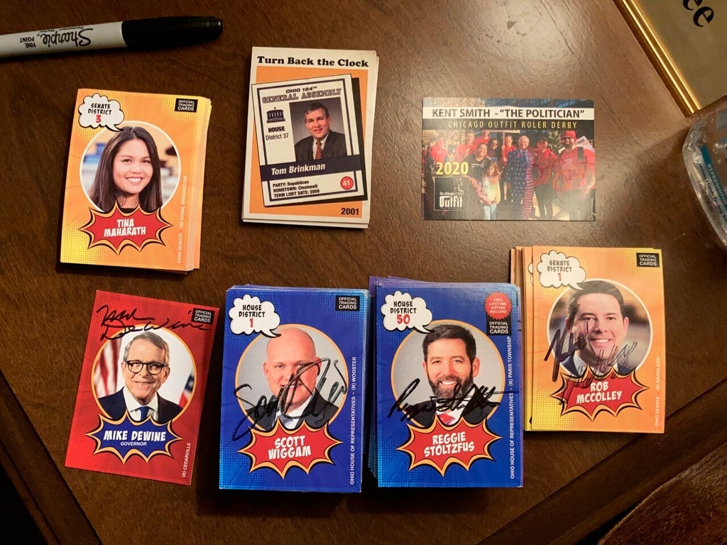 Rep. Kent Smith, a suburban Cleveland Democrat, offered a lesson when Headlee tracked him down at a vintage baseball game on Statehouse grounds: Use a Sharpie. Smith had been signing trading cards for fans for years, as a veteran announcer for the Burning River and Chicago Outfit roller derby leagues. Permanent marker, he told Headlee, was the way to go.