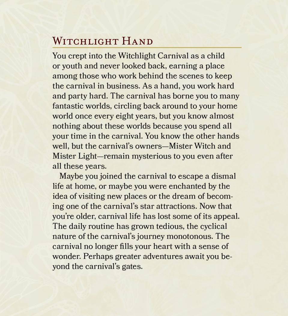 “The Witchlight Hand is a background that ties your character more closely to the carnival,” said Perkins, “which is inspired by many a young person’s dream to run away and join the circus.”