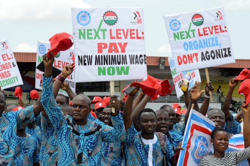 The majority of Nigerian workers have to make do with a monthly minimum wage of 30,000 Naira (US$72). Only 17 percent of Nigerian workers hold jobs that pay enough to get them out of poverty.