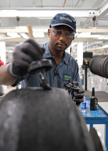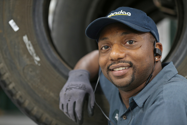MINNEAPOLIS _ Davis Powell works at Pomp's Tire Service outside the Twin Cities, where he inspects and repairs tires. "Overall, it's a good job with good benefits," said Powell, 33, a two-year employee.