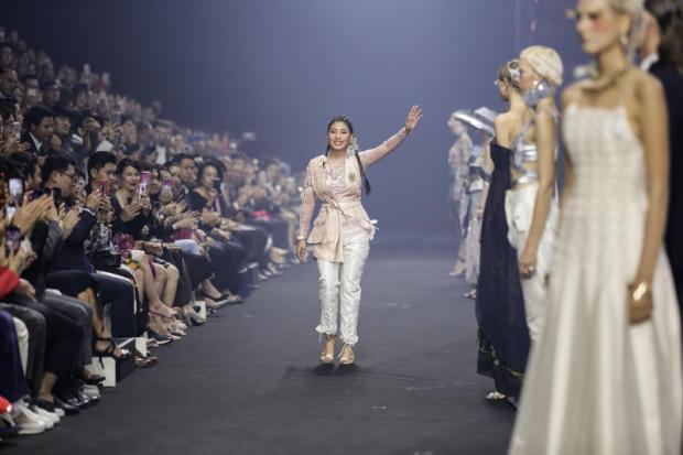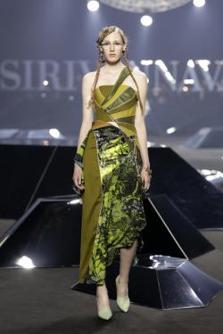 Models circumvented the elevations and walked the criss-cross choreography, in sync with an original score composed by the multi-talented Princess and performed by the Royal Bangkok Symphony Orchestra.
