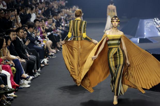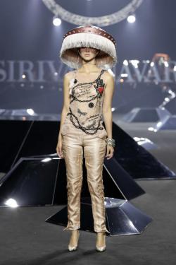 The maison's founder and creative director, HRH Princess Sirivannavari Nariratana, piloted the exploration to the imaginary planet, whose gleaming dunes landscaped a celestial runway at the centre of the hall.