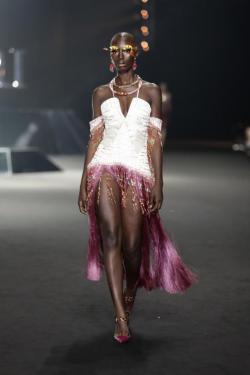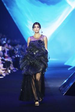 "Silhouettes and structures are quite varied and complicated, from deconstructed looks to asymmetrical gowns. I added some details and techniques to create dimensions such as a quilted pattern, pleating technique from Gérard Lognon's workshop in Paris, and Maasai Mara-inspired embroidery produced in our maison's workshop," noted the Princess.