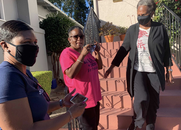 BERKELEY, Calif. — On a block along Berkeley's Bancroft Way, in front of the small, yellow house where Sen. Kamala Harris, the vice president-elect, grew up, there was a small but festive celebration Saturday afternoon.