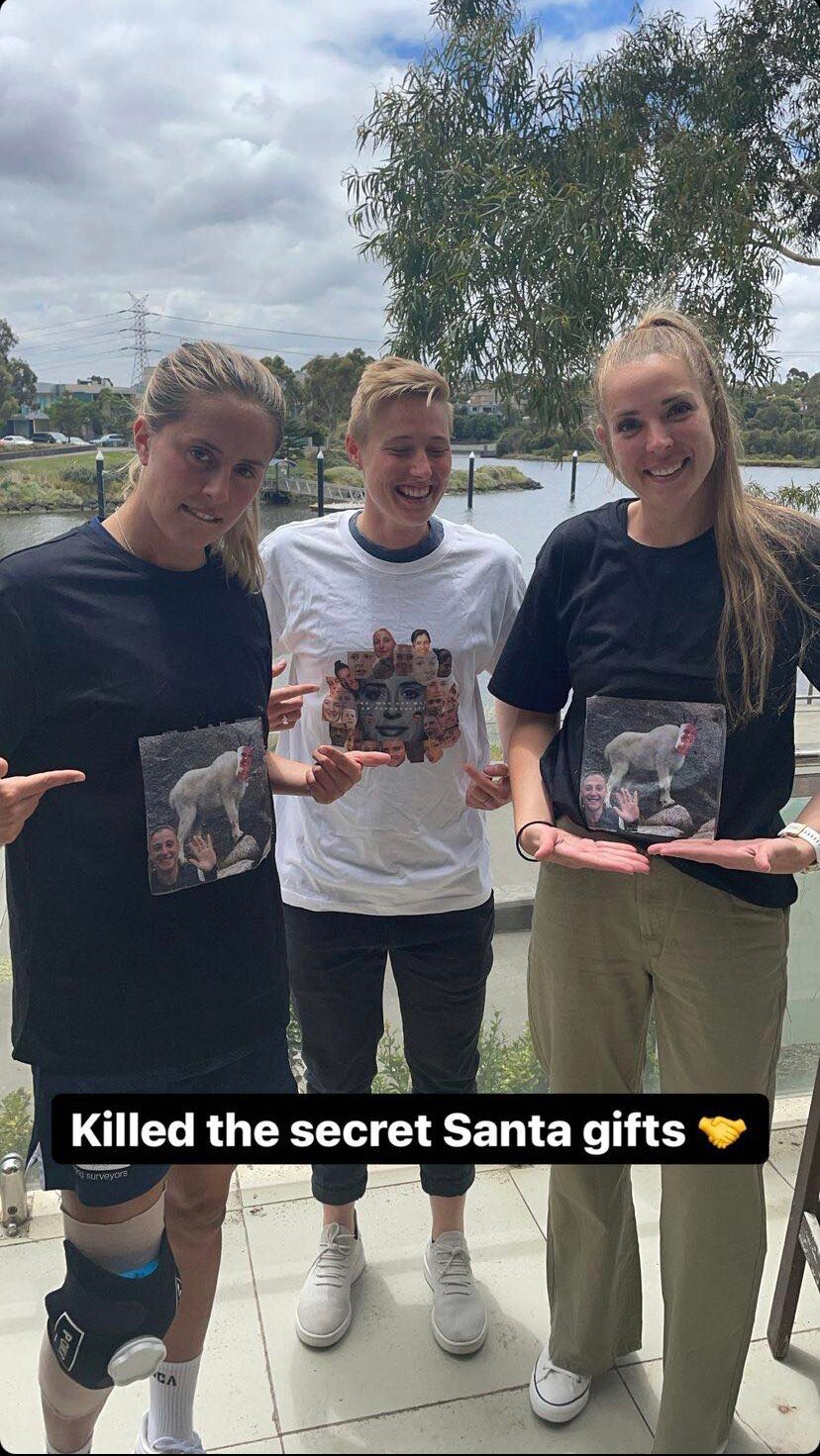 This Secret Santa gift made its way onto striker Maja Markovski's Instagram: t-shirts featuring a photo of captain Lia Privitelli photoshopped onto the body of a goat. The real ALW, it turns out, is the friends we make along the way.
