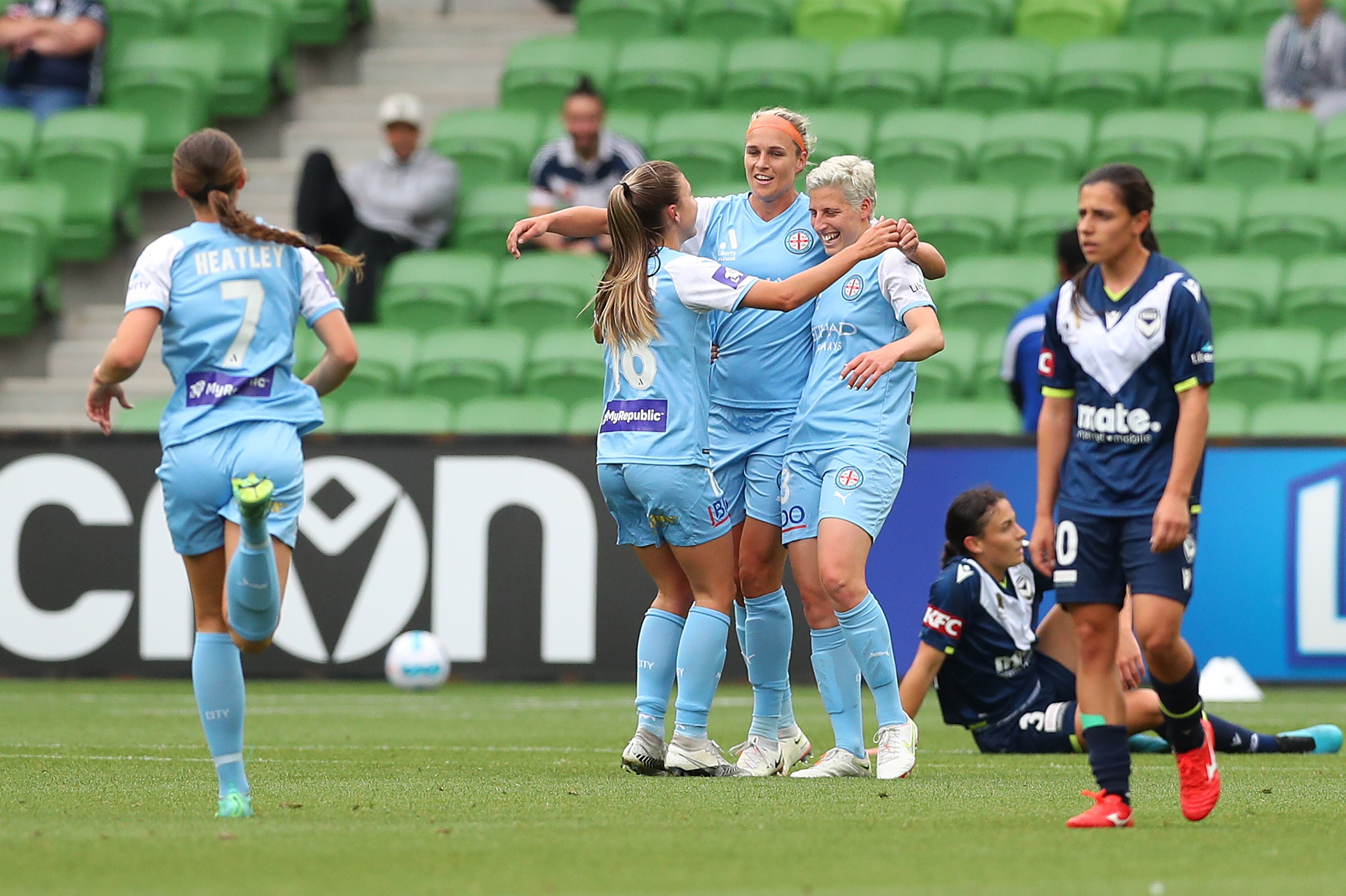 A miscommunication between Dumont and make-shift centre-back Tiffany Eliadis also resulted in a City goal after the two Victory players clattered into each other while trying to negotiate a back-pass, allowing Wilkinson to skip around the infuriated pair and pass calmly into the net for her 25-minute hat-trick.