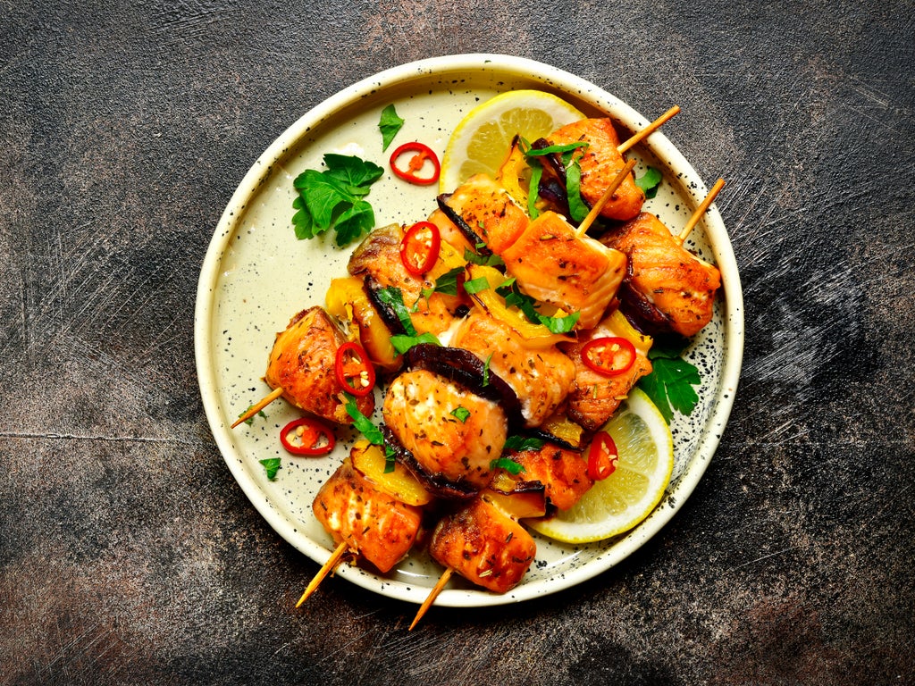 Saffron salmon kebabs