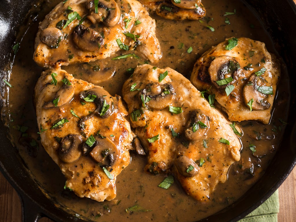 2. In a casserole dish over medium-high heat, combine 1 tablespoon oil and 1 tablespoon butter. When the butter melts, add chicken in batches and cook until browned on both sides, 4 to 6 minutes per side. If the pan dries out, add a little more oil as needed. Transfer browned chicken to a plate.