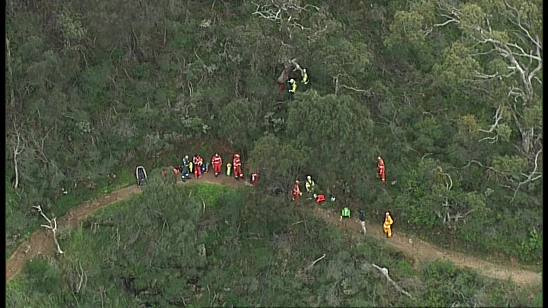 Dozens of emergency services workers were called to the First Falls walking track in the park about 8:30am on Saturday.