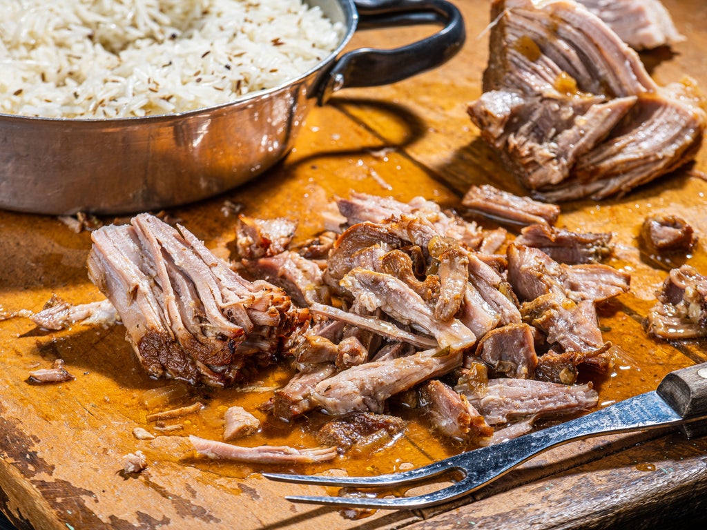Instead of hours of slow braising, this tender pork shoulder (or you can use the similar pork butt) cooks in an Instant Pot for a little more than an hour, with apple cider and fragrant rosemary and sage. If you can marinate the pork in advance, you are guaranteed deeper flavour, but that step isn’t essential to success. Serve with aromatic cumin rice (see related recipe) and a glass of hard cider; or for a zero-proof option, combine equal parts apple cider and sparkling water, for a refreshing autumn drink.
