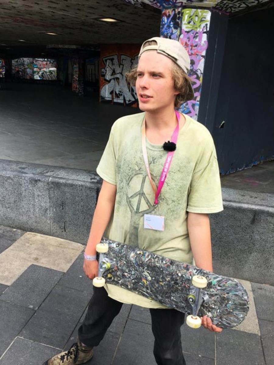 Knight is not a skateboarder himself, so he took one of his finished creations to a skate park on London's South Bank for others to field test.