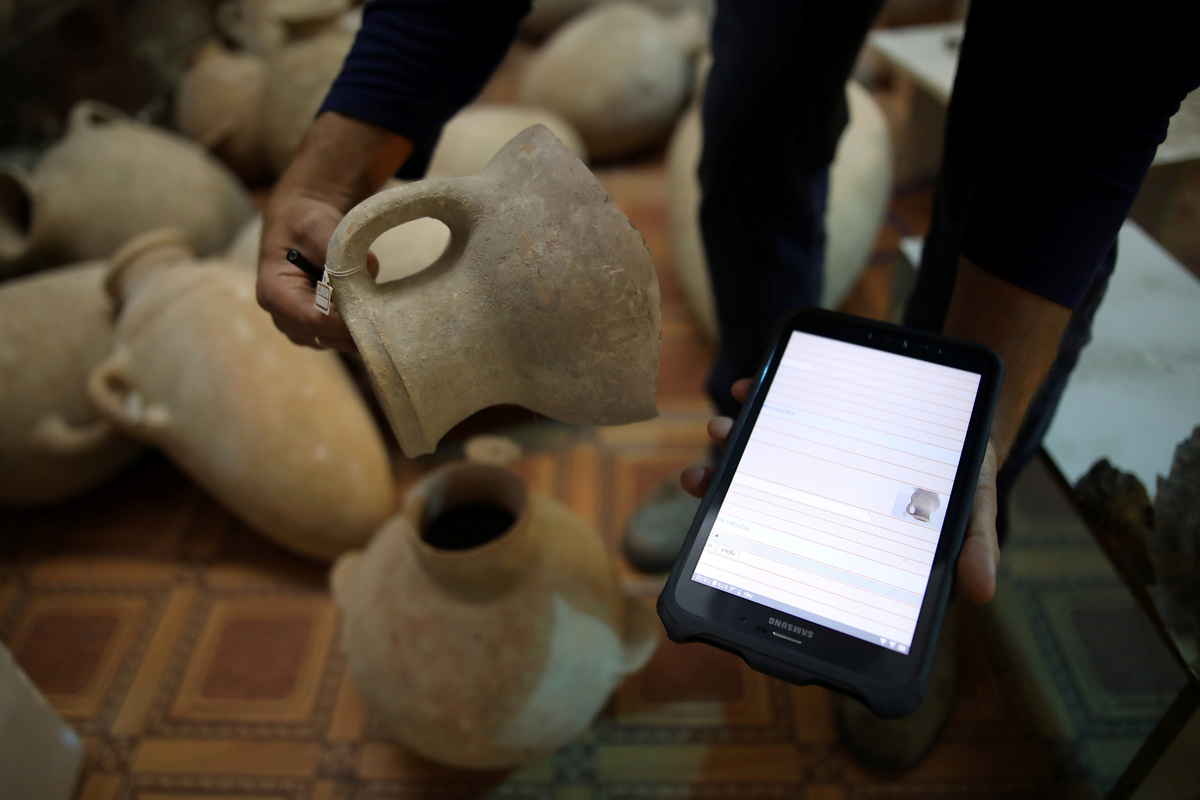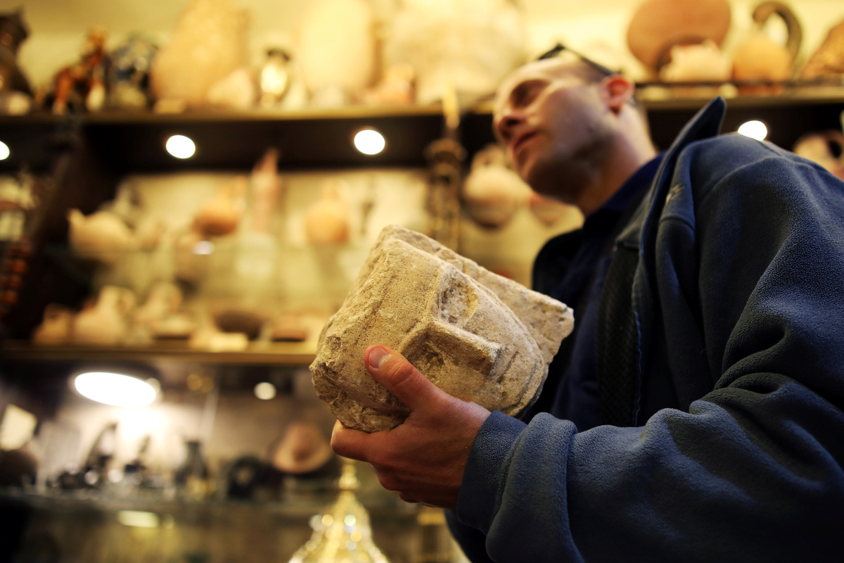 In the narrow streets of the open-air shuk (market) of Jerusalem's Old City, Eitan Klein of the Israel Antiquities Authority stops by dealers to make sure their goods appear in an official registry and are not being traded on the black market.