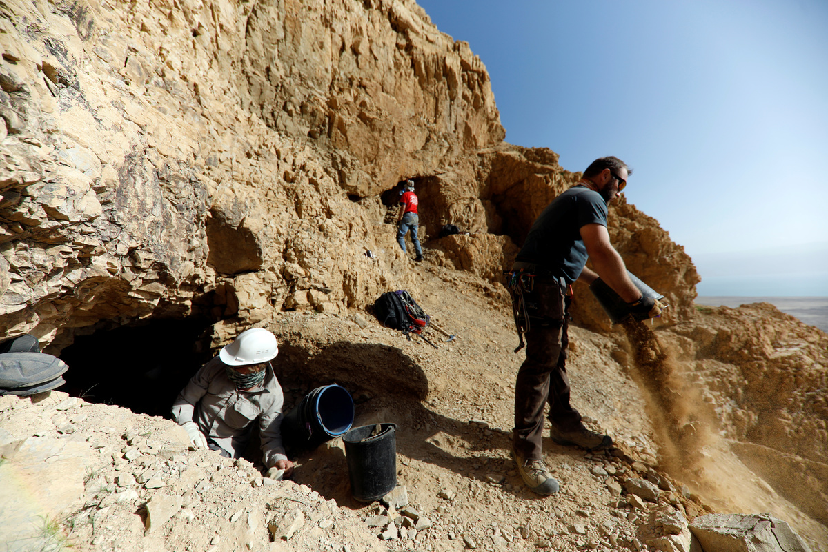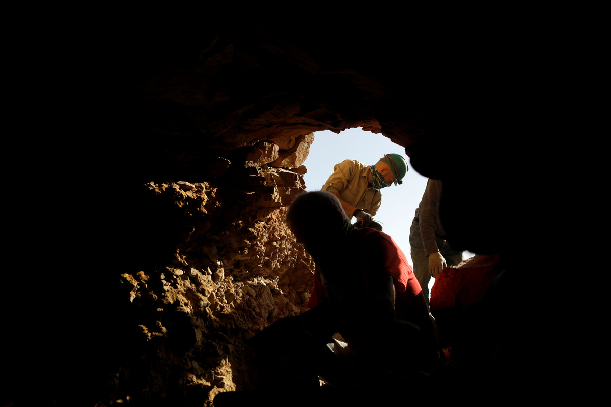 Towards the back of the cave is a narrow burrow, packed with debris from centuries of wind and flash floods, that when cleared could extend about 10 meters. Volunteers sift through buckets of dirt.