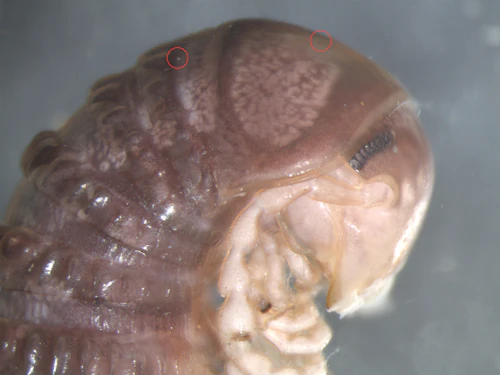A researcher from the University of Copenhagen's Natural History Museum of Denmark was checking out extreme close-ups of the North American millipede on Twitter (as one does) when she noticed white spots on its carapace. While the specks might look like nothing to most people, to Ana Sofia Reboleira they indicated the presence of a parasitical fungi not seen on this species of millipede before.