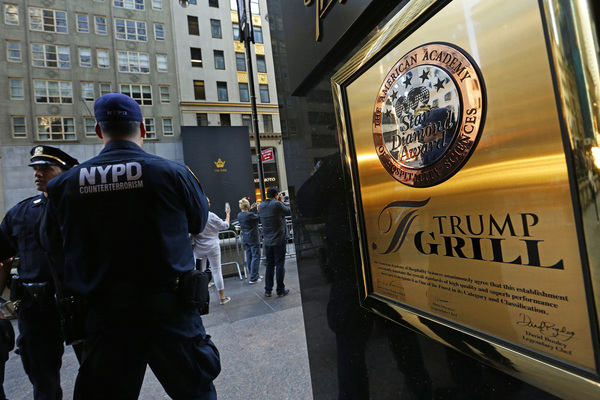 Anti-Trump protesters have hurled eggs at the glass-and-granite facades of the row of Trump buildings where Brod lives. At other buildings, they've dumped excrement.