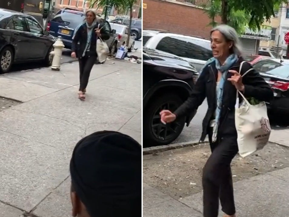 (Picture: TikTok/thebadmanswag)A “Karen” who went viral last month after she called the police on two Black women has been shamed by onlookers who recognised her in the street.