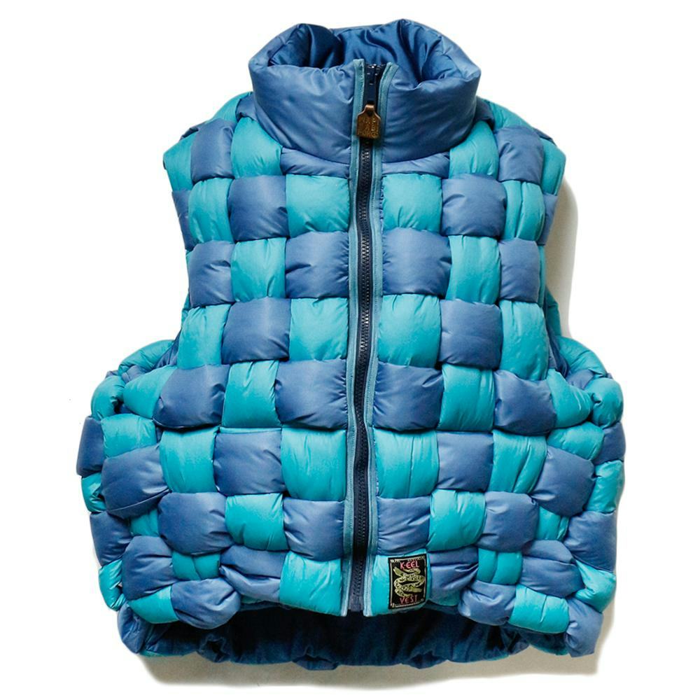 Ever since I first saw this vest, I haven't been able to stop thinking about it. I dream of being able to shell out two racks for this immaculate weave of down-filled strips of ripcord. Shopping may be akin to chasing the dragon, but I fully believe I'd reach a point of stasis if I could make this beaut mine.