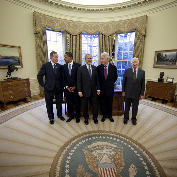 There exists a famous photo of previous presidents gathered around Barack Obama in the Oval Office shortly before he began his first term. It's as though they all dropped by to wish him luck.