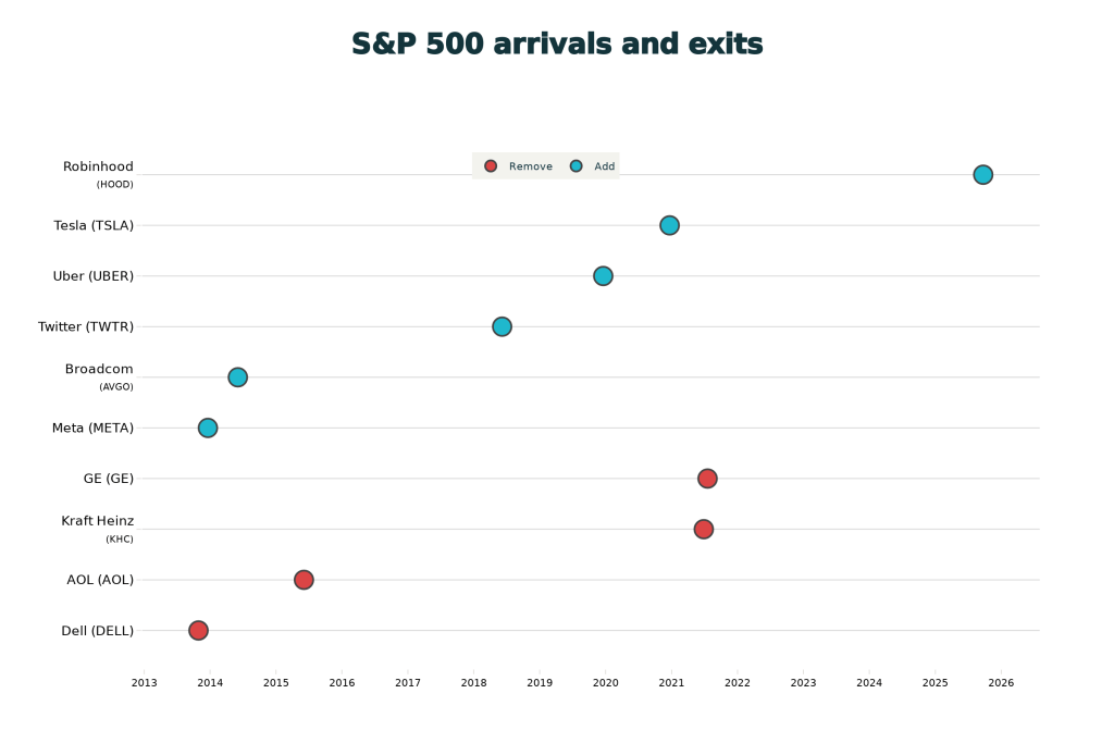 When a company’s share price suddenly jumps, it’s usually in response to announcements—like a merger or a great earnings release—that top executives have prepared for weeks. Sometimes, though, the good news comes out of the blue and is as much of a surprise to the CEO as it is to the rest of the market. That’s what happened last month, when S&P Dow Jones announced that the financial platform Robinhood would be joining its all-important index of 500 leading U.S. companies, leading the price of HOOD shares to soar nearly 16% in a day.