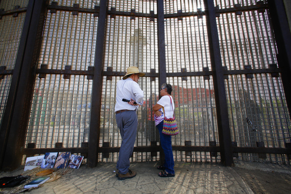 Today, the fence consists of a highly controlled double-barrier. On weekends, the secondary fence is opened for several hours, allowing those on the U.S. side to step up to the primary fence and talk to friends and family across the border; the tightly woven metal mesh that allows them only to touch fingers. Two or three times a year, the primary fence is opened briefly at the request of the group Border Angels, allowing people to embrace.