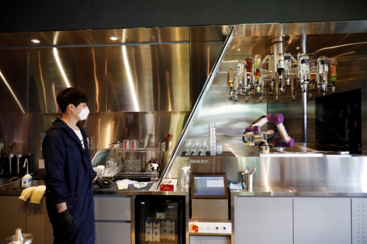 Robo-bartenders are shaking up South Korea's cafe and bar culture as the country transitions from intensive social distancing to what the government calls "distancing in daily life".