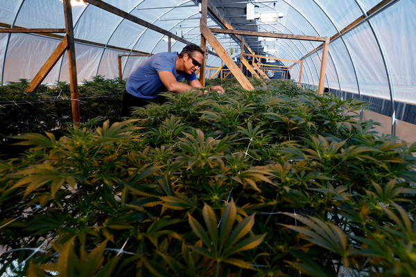 The hooped tent perched on one of the hills on his property houses rows of young marijuana plants of different varieties. As he walked among the 3-week-old stalks, he said the rush for cultivation licenses in California is the cannabis industry equivalent of the dot-com-era boom.