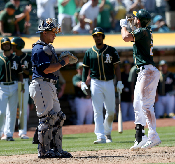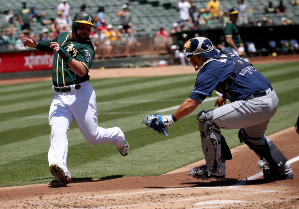 Rajai Davis, who has seen his batting average rise 18 points over the past eight games, continued his improved play. After walks to Bruce Maxwell and Jaycob Brugman in the fifth, Davis hit a ground-rule double down the right-field line that brought in Maxwell for Oakland's first run with one out. The double sparked a four-run rally that also saw Davis score from third on a wild pitch, and an RBI single from Yonder Alonso to put the A's ahead 4-2.